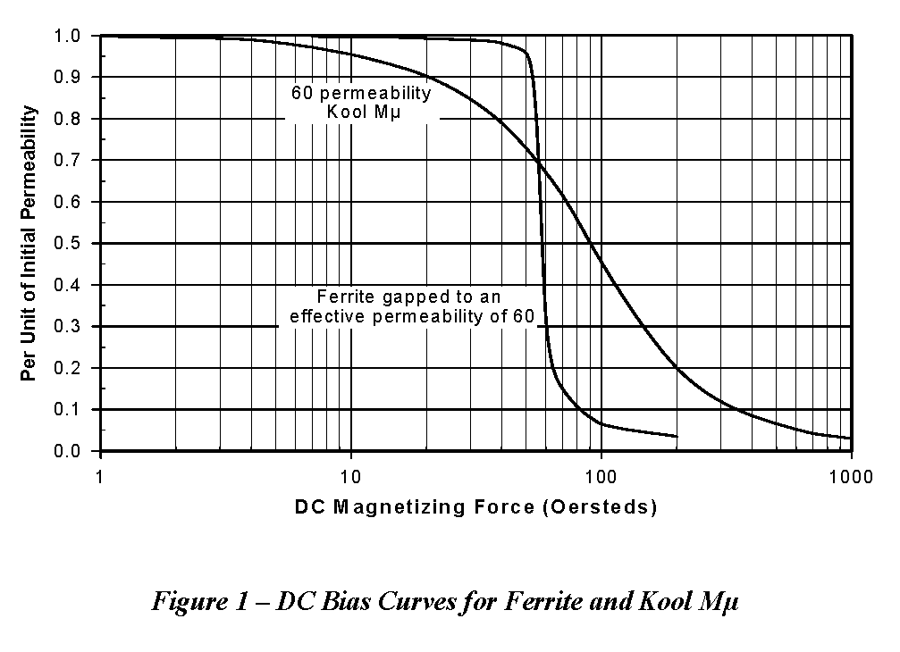 Figure 1 - DC Bias Curves for Ferrite and Kool Mu