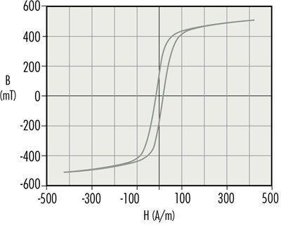 | Saturation Flux Density (4,700 G at 15 Oe, 25°C) | 470 mT, 11.9 A•T/cm |