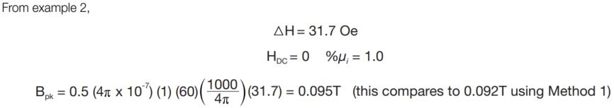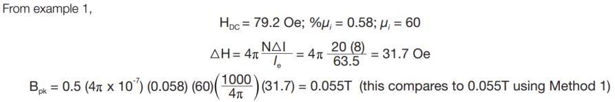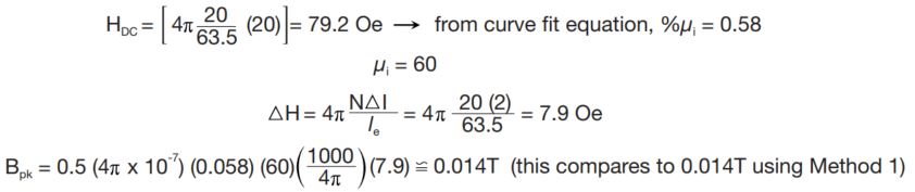 Method 2, For small ▲H, approximate Bpk from effective perm with DC bias. Bpk = f(μe, ▲H)