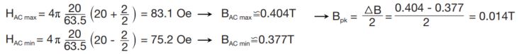 Method 3, for small ▲H, determine Bpk from biased inductance. Bpk=f(L,I)
