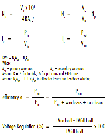 Once a core is chosen, the calculation of primary and secondary turns and wire size is readily accomplished.