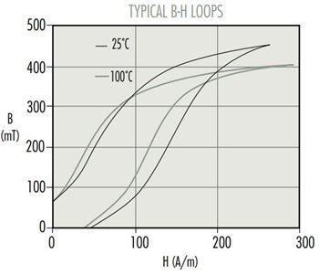 | Saturation Flux Density (4,200 G at 15 Oe,25°C) | 520 mT, 12 A•T/cm |