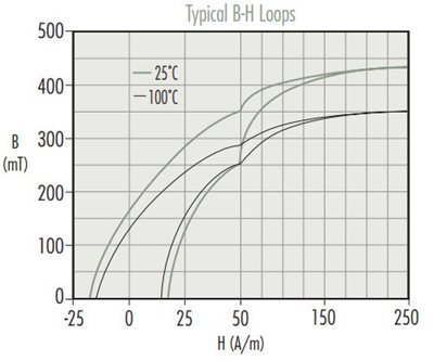 | Saturation Flux Density (4,700 G at 15 Oe, 25°C) | 470 mT, 11.9 A•T/cm |