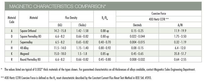 美磁绕带磁芯是复杂的电子电路中的高可靠性应用的重要组成分子,包括军事,航天,通信,钻油井工程和核反应堆。绕带磁芯和卷轴磁芯由细条的高磁导镍铁合金制成,如Square Orthonol®, Square Permalloy 80, Round Permalloy, Supermalloy,及Alloy 48, 或称为Magnesil®的晶粒取向硅钢铁。绕带磁芯的具体应用包括磁性放大器,转换器和逆变变压器,电流互感器,和静磁场装置。